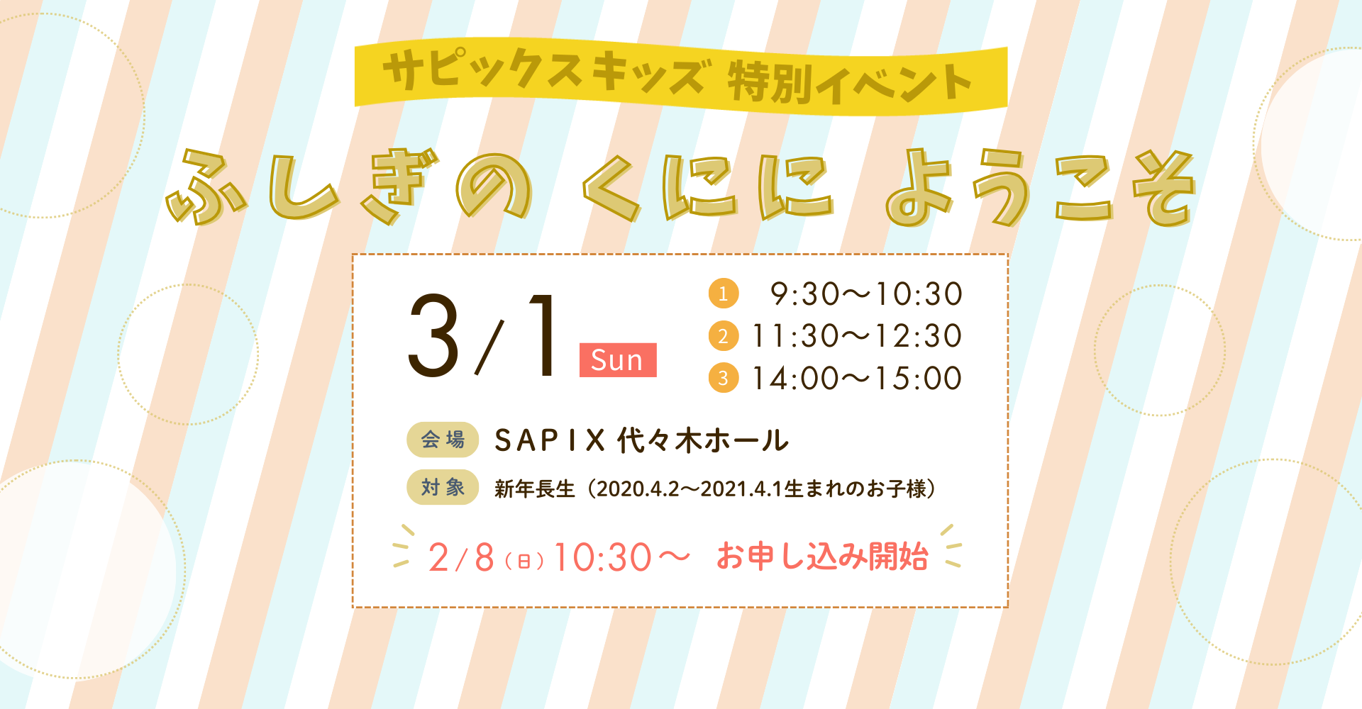 3月1日(日)開催 サピックスキッズ特別イベント「ふしぎの くにに ようこそ」(新年長生対象)